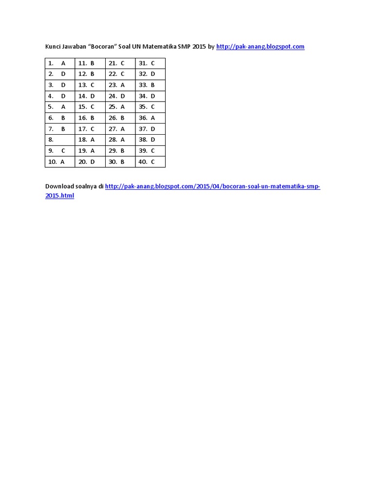 Top Pdf Soal Latihan Dan Pembahasan Un Matematika Smp Tahun Pelajaran 2018 2019 from data03.123doks.com Pembahasan bocoran un matematika 2019 pak anang. We did not find results for: Check spelling or type a new query. Maybe you would like to learn more about one of these?